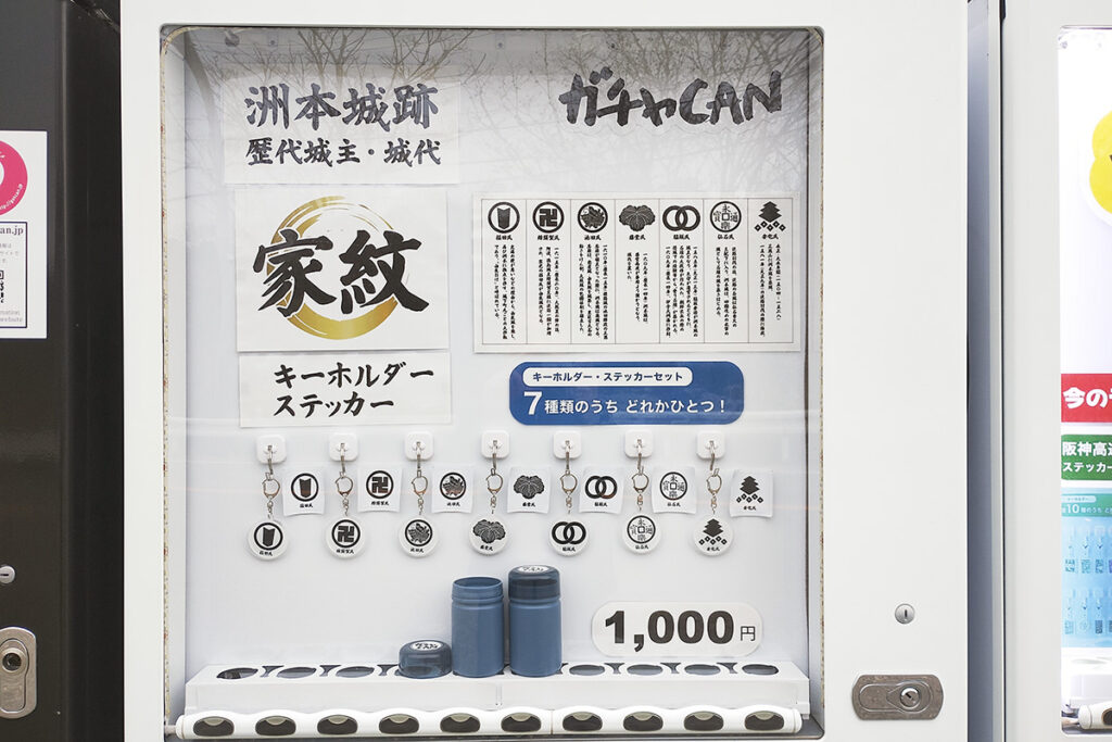 今回、販売する商品は家紋アクリルキーホルダーと、全国のガチャCANからこちらのロケーション専用に詰め込んだ商品ガチャCANになります。