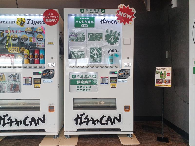 本日、阪神高速泉大津パーキングエリアの自販機BASEに「阪神高速看板ハンドタオル第2弾」をガチャCAN自販機に投入してきました!
