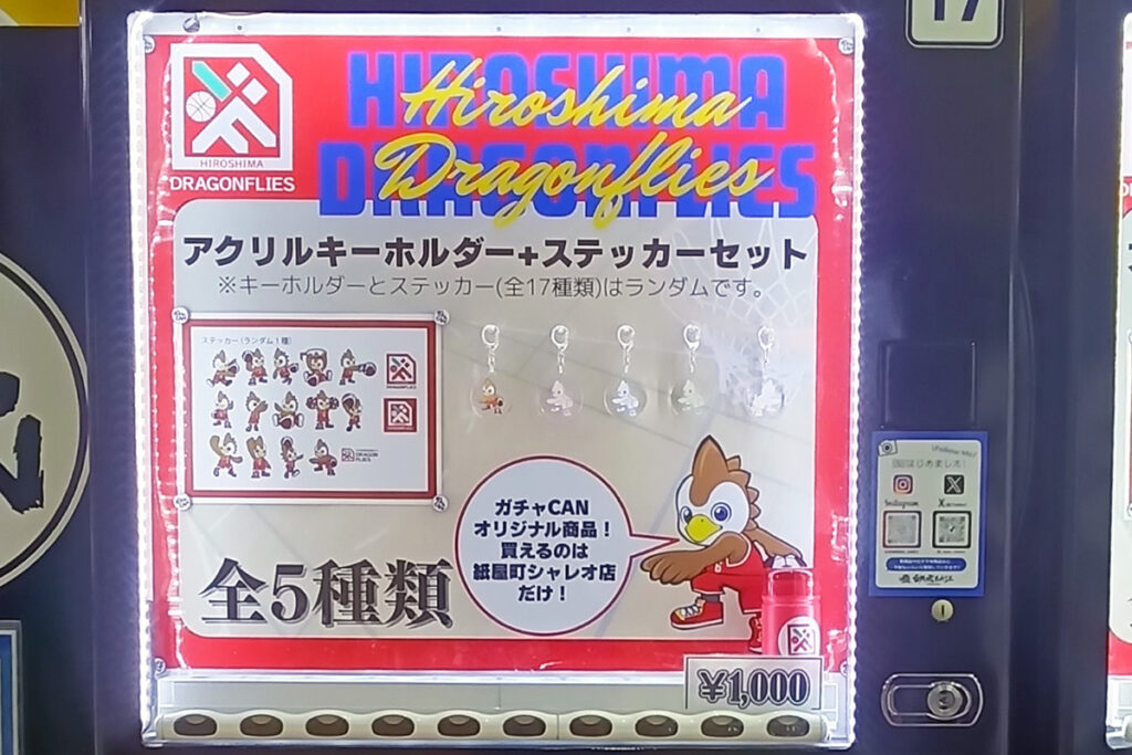 本日より「ドラゴンフライズアクリルキーホルダーとステッカー」自販機BASEが紙屋町シャレオにて販売開始です!!