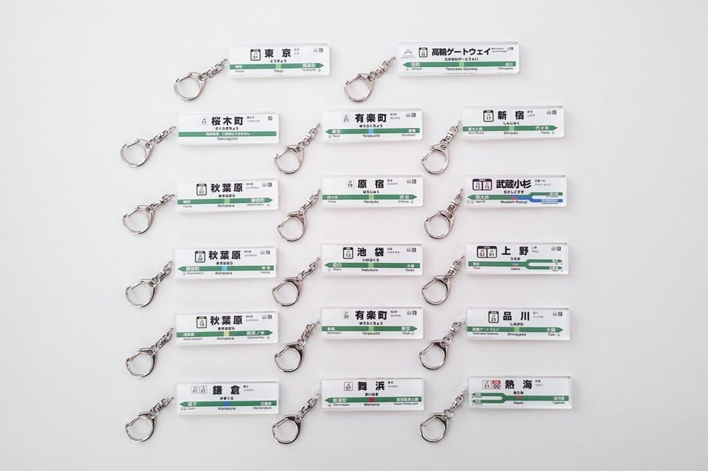 昨年販売した「JR西日本駅看板アクリルキーホルダー」シリーズは、多くのお客様にご好評をいただきました。これを受け、今回新たにJR東日本エリアの駅看板をモチーフにしたシリーズを展開いたします。