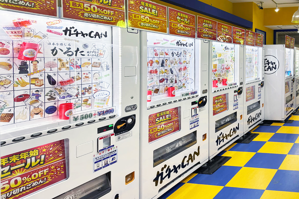 自動販売機とカプセル商品を組み合わせた、新しい小売体験。中に入るのは、地域密着の商品、発売前の試作品、日本文化をモチーフにしたオリジナルアイテムなど。どれが出てくるかは回してからのお楽しみ!偶然性と発見がガチャCANの醍醐味です。